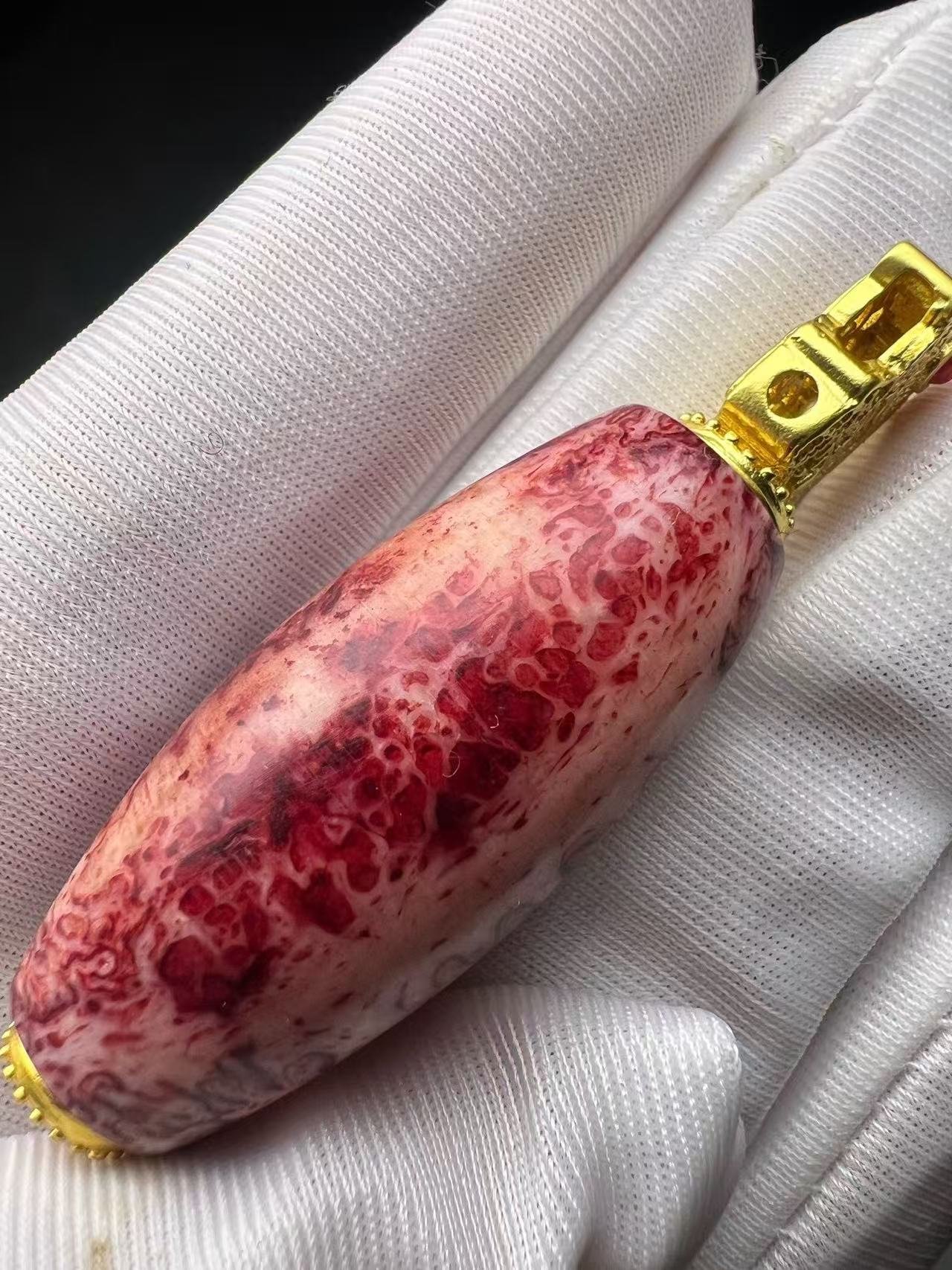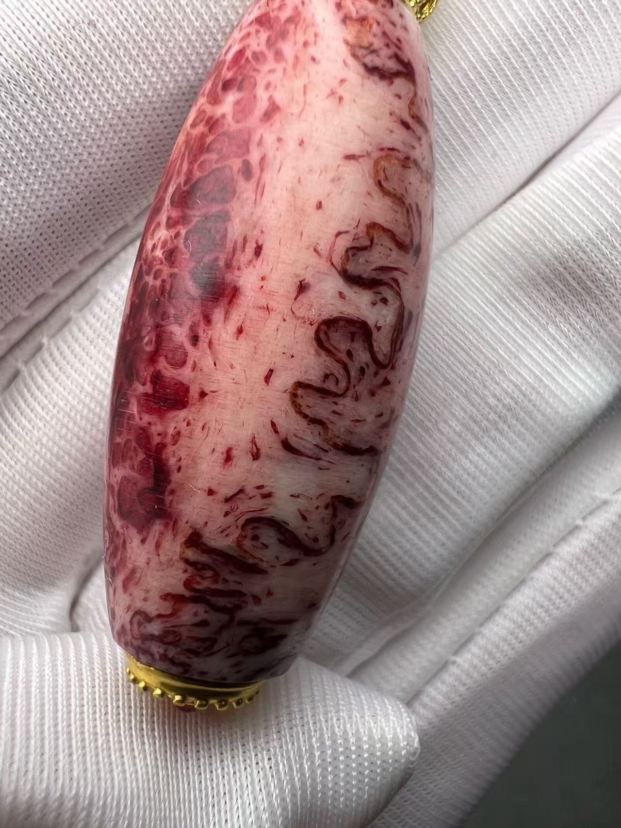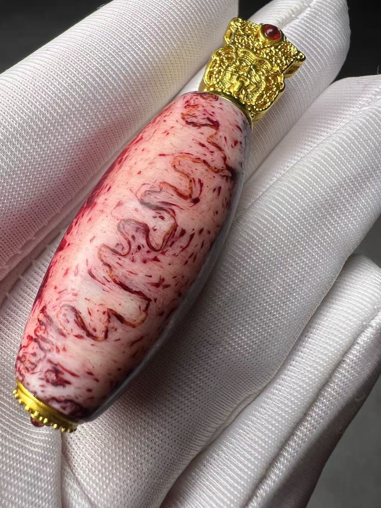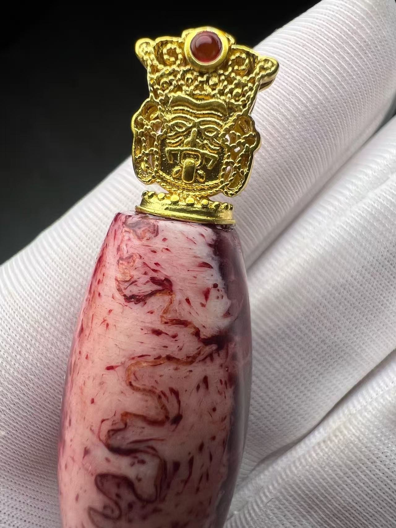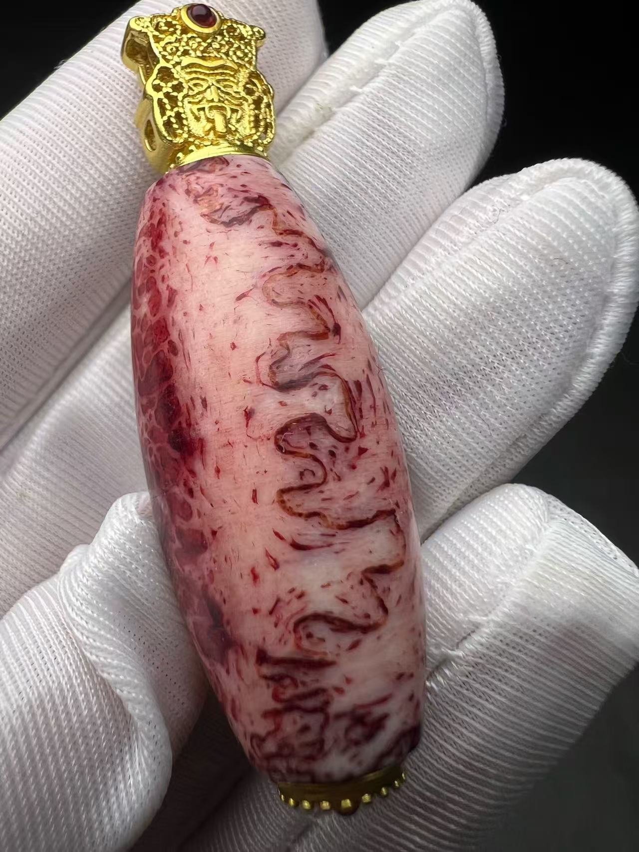 Forged from the sacred “ding bone” of venerable specimens—harvested from the blood-marked眉心 (third eye) zone—this gilded masterpiece transcends mere adornment. Each curve whispers of three realms (earth, human, divine), its dense,纹路-laced surface (featuring rare “tadpole inscriptions”) destined to patina into jade translucence with devotion.