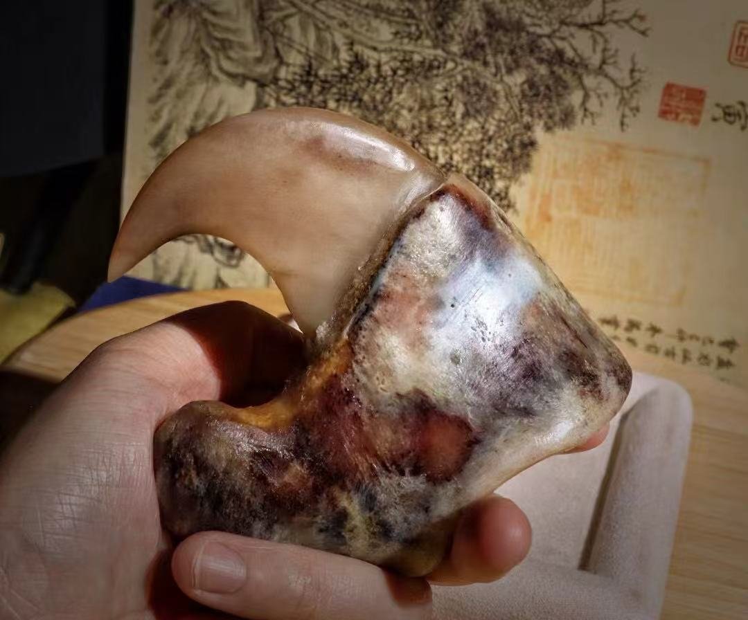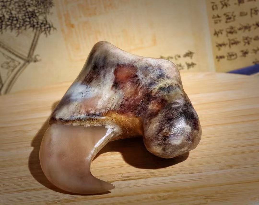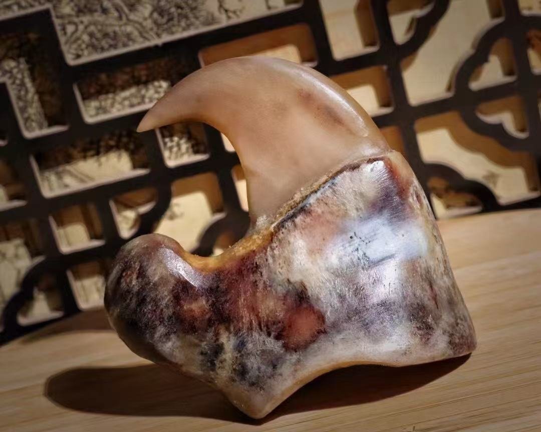 Crafted from premium materials including royal horn hooks, aged bone, and blood-marked bone segments, this exquisite piece is not only a collector’s treasure but also a wellness enhancer. The organic components can be absorbed by the body, offering potential skincare benefits. Long-term wear or handling may help relieve wrist tension and reduce stress through gentle massage. With short-term use, it develops a jade-like patina, revealing intricate tadpole-like patterns.